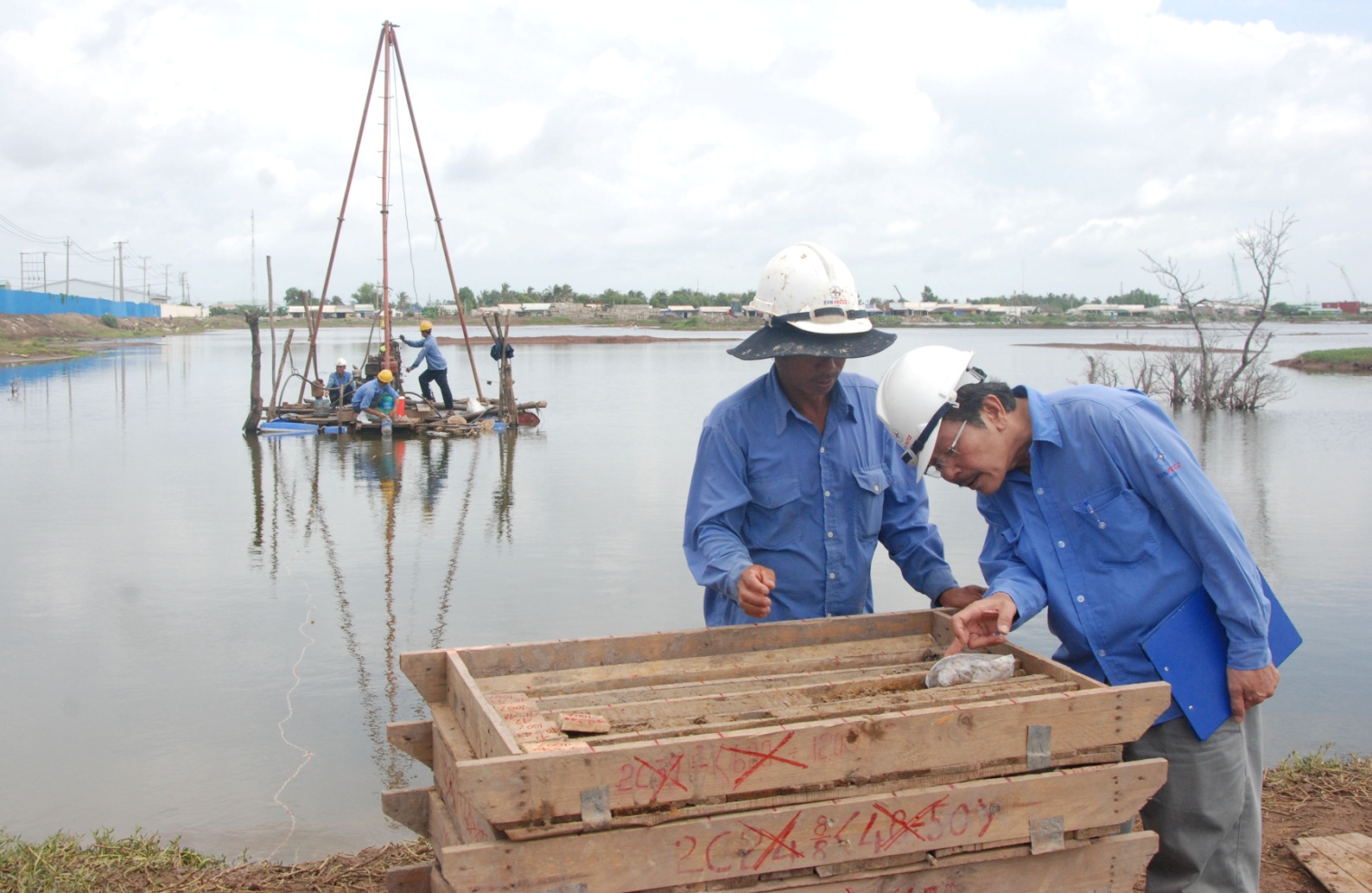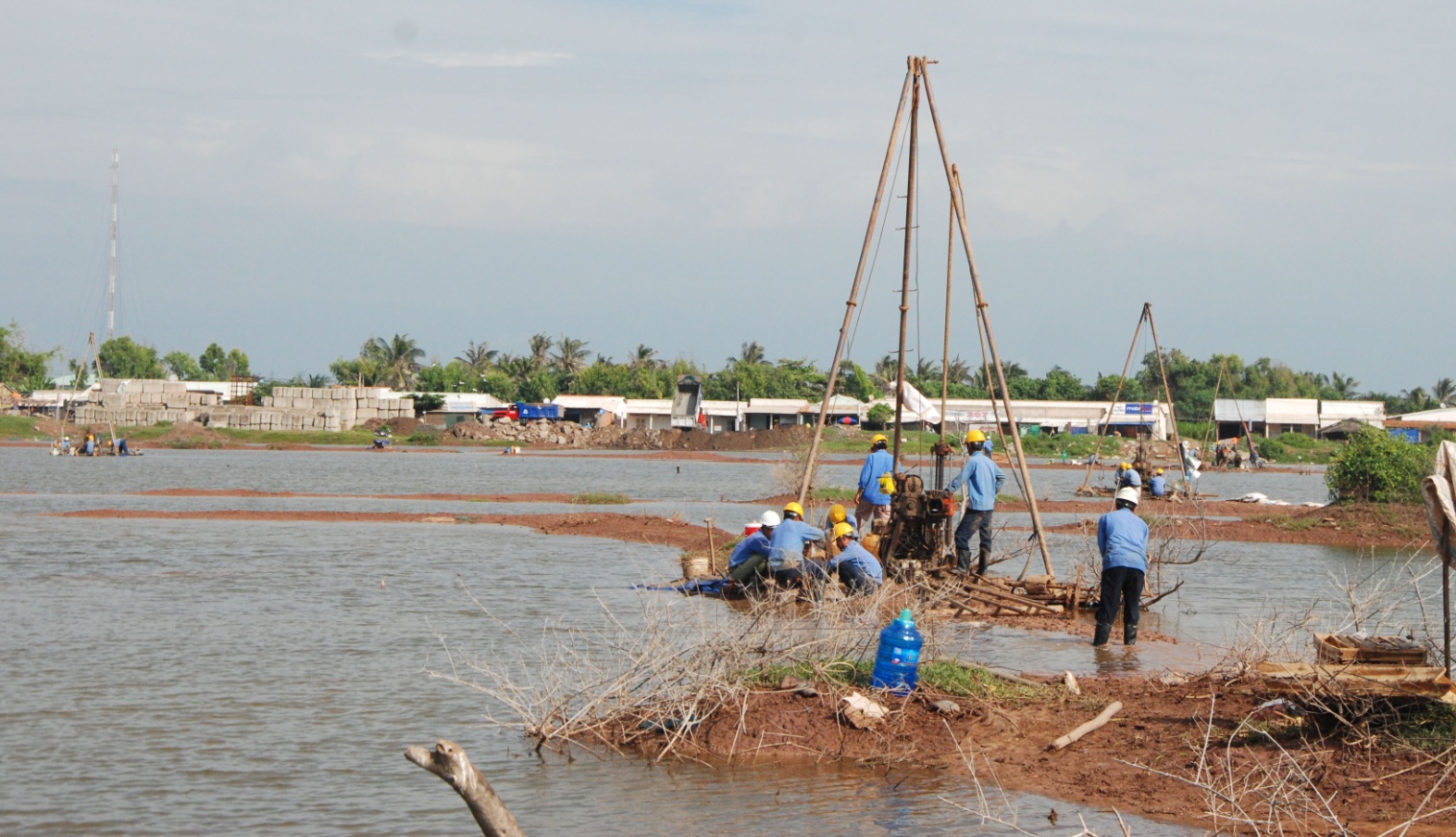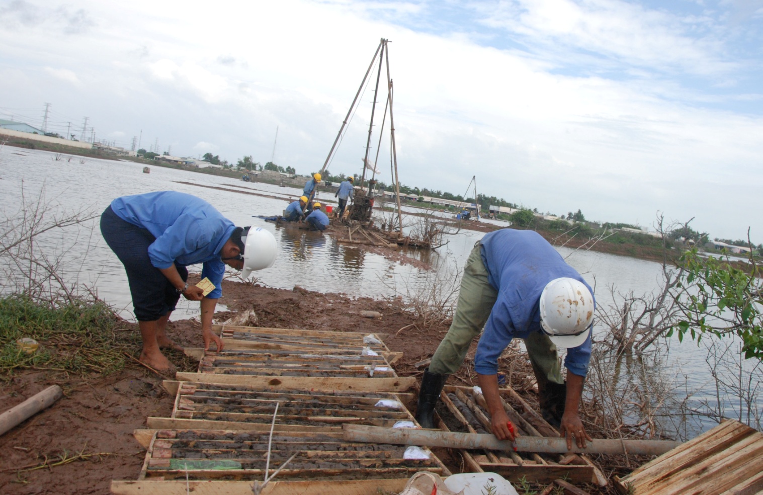 Đến thăm công trường Duyên Hải 2 những ngày đầu tháng 8, tình hình thời tiết không thuận lợi đang gây nhiều khó khăn cho công tác khảo sát, trong 10 tổ máy đang hoạt động thì đã có 9 vị trí hố khoan nằm tại các ao/vũng nước có độ sâu trung bình 1-1,5m gây rất nhiều khó khăn trong di chuyển, vận hành máy móc vật tư thiết bị ...  Những cơn mưa chợt đến rồi đi tuy không gây khó khăn gì cho người dân miền Tây sông nước nhưng lại là một trở ngại rất lớn cho những người làm công tác khảo sát.