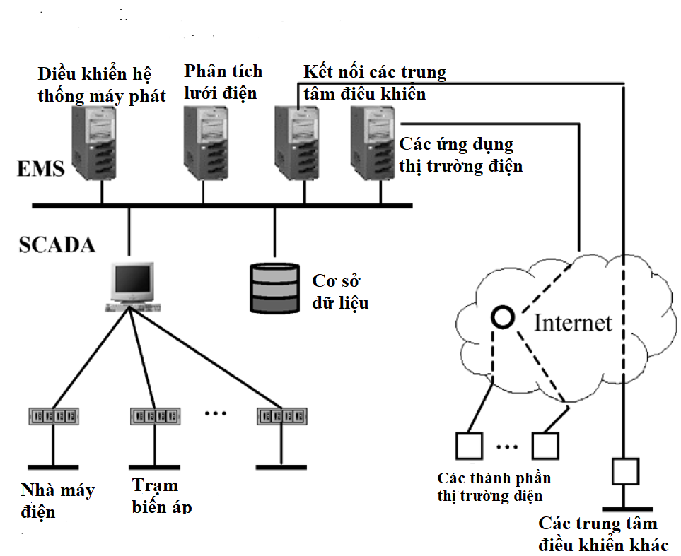 -Những năm 1970: Năng lực của máy tính kỹ thuật số được nâng cao, dẫn đến các chức năng điều khiển sau được tích hợp vào trung tâm điều khiển trên nền tảng SCADA: Phân bố công suất tối ưu (OPF), Điều khiển ngăn ngừa (preventive control), phân bố kinh tế máy phát bảo đảm ràng buộc ổn định (secured-constrained ED), điều động tổ máy phát (Unit commitment), đánh giá trạng thái. Sự tích hợp của toàn bộ các chức năng trên cùng với điều khiển sơ cấp ở máy phát tạo thành hệ thống quản lý năng lượng (EMS) trong hệ thống điện.