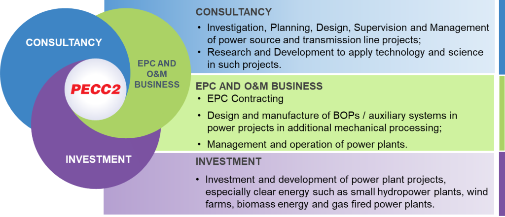 For 35 years of development, Power Engineering Consulting Joint Stock Company 2 (PECC2) has been growing significantly and becoming one of the leading brands in Vietnam’s power sector, undertaking more than 100 power source projects (>25,000 MW), 150 substations (>28,000 MVA), 400 transmission line projects (>6000 Km) in addition to providing operation and maintenance services for power plants which have totaled more than 500 MW of electricity generation capacity.