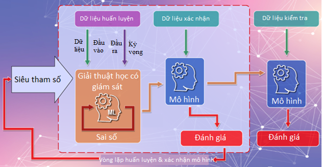 Phương pháp luận cơ bản của việc xây dựng mô hình học máy bao gồm 3 khâu: huấn luyện, xác nhận, và kiểm tra. Khâu huấn luyện thực hiện việc chỉnh định lặp các tham số bên trong mô hình từ sai số huấn luyện. Ở khâu huấn luyện, cần lựa chọn cẩn thận dữ liệu đầu vào, dữ liệu đầu ra và các siêu tham số điều khiển quá trình huấn luyện. Các siêu tham số này sẽ chi phối việc các tham số bên trong mô hình được chỉnh định như thế nào từ sai số huấn luyện và sai số của khâu xác nhận sau đó.