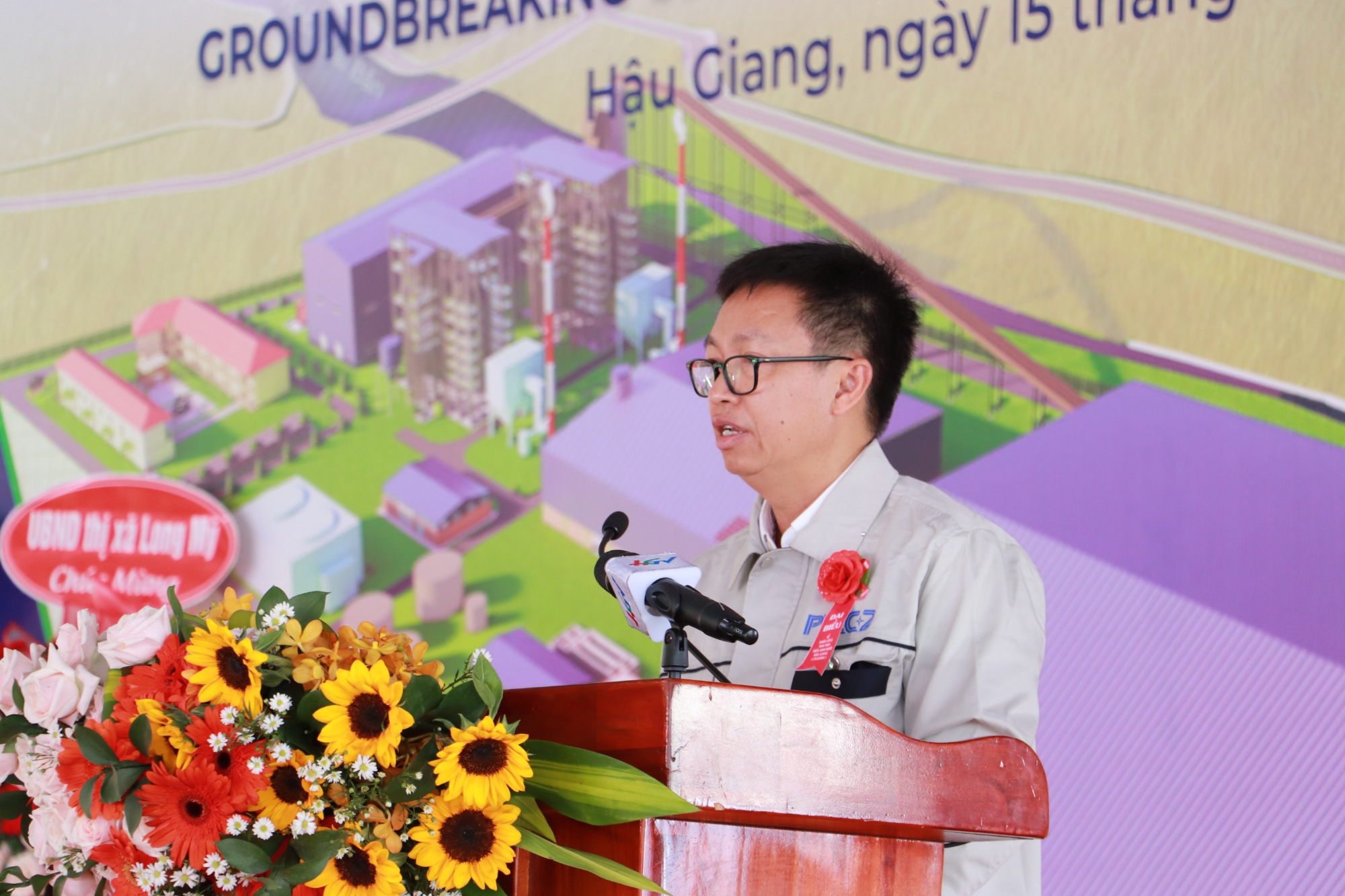 Ngoài ra, buổi lễ còn có sự hiện diện của Ông Hitoshi Honna - Chủ tịch HĐQT Công ty Cổ phần Erex (Nhật Bản); Bà Trương Ngọc Thùy Trang - Giám đốc Công ty Cổ phần Năng lượng Sinh khối Hậu Giang; Ông Nguyễn Chơn Hùng - Chủ tịch HĐQT PECC2; và khoảng gần 100 khách mời là đại diện từ các cơ quan ban ngành tỉnh, địa phương và người dân khu vực dự án.