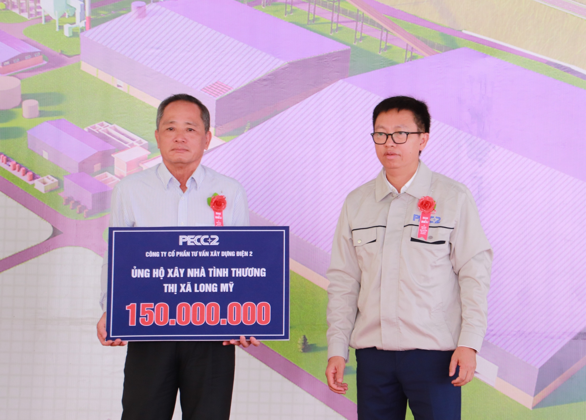 PECC2 ủng hộ thị xã Long Mỹ 150 triệu đồng xây dựng nhà tình thương.