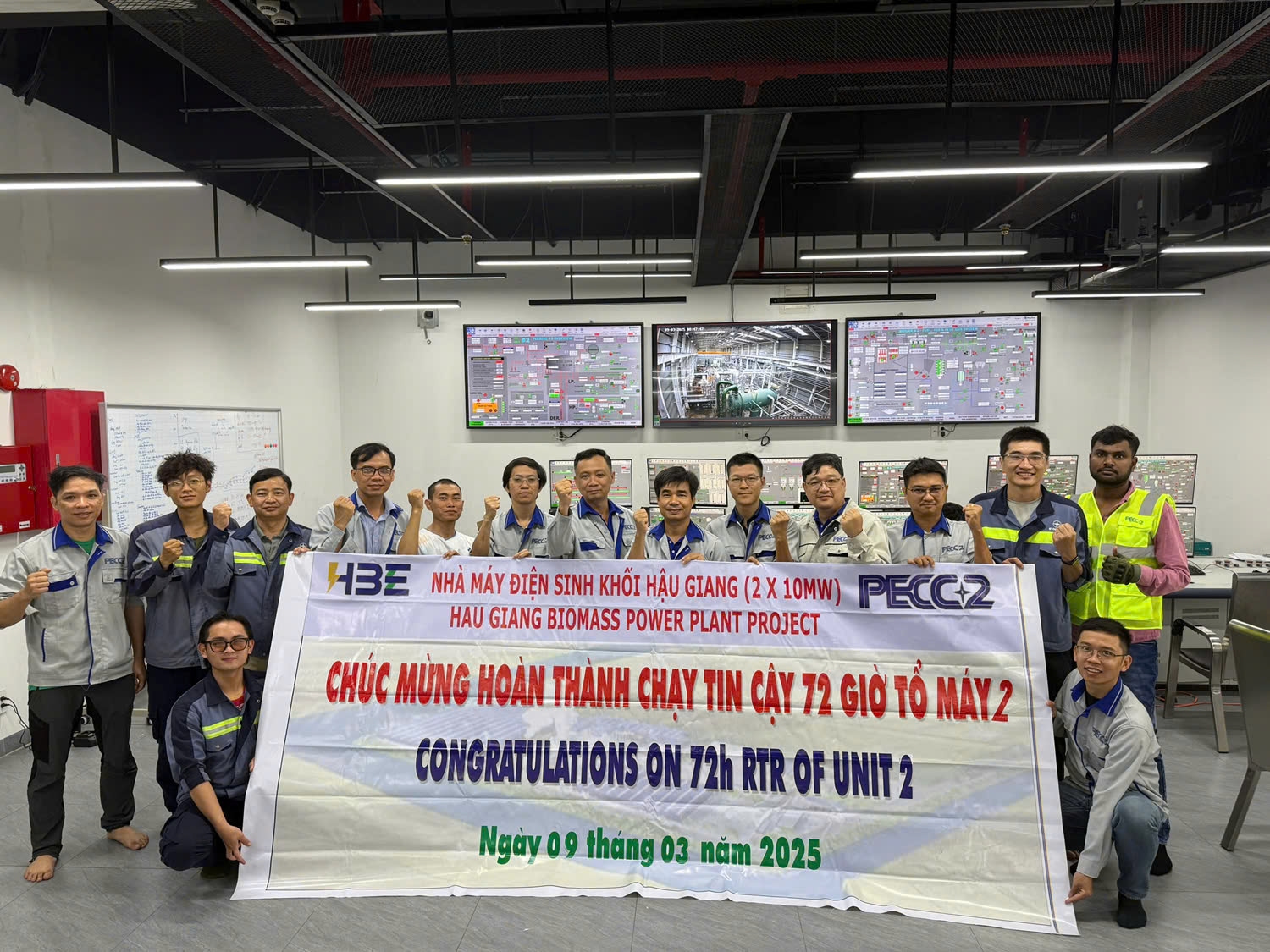 Ngày 09/03/2025, Dự án Nhà máy Điện sinh khối Hậu Giang tiếp tục đạt được một cột mốc quan trọng khi hoàn thành chạy tin cậy 72 giờ cho tổ máy số 2. Trước đó, vào ngày 25/02/2025, Tổ máy số 1 của Nhà máy Điện sinh khối Hậu Giang đã hoàn thành chạy tin cậy 72 giờ đầy tải (10MW) theo quy định. Đây là bước ngoặt quan trọng đánh dấu hoàn thành toàn bộ công tác thử nghiệm, thí nghiệm của tổ máy sẵn sàng cho phát điện thương mại (COD).