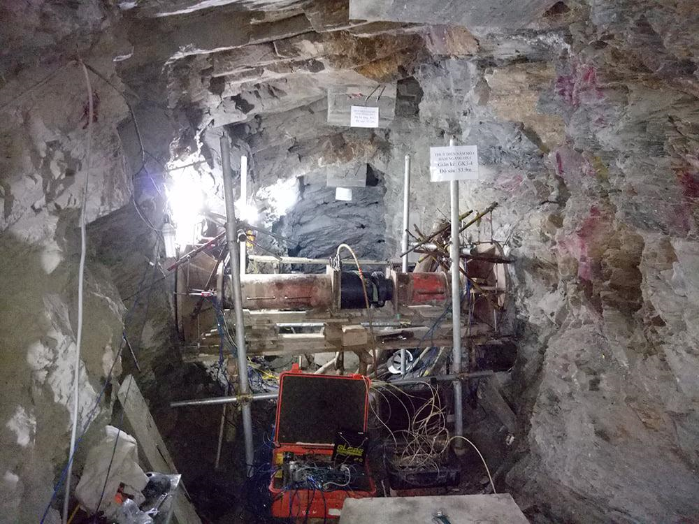 Thí nghiệm cơ địa trong hầm ngang bằng phương pháp giãn kế. Nguồn: PECC2
