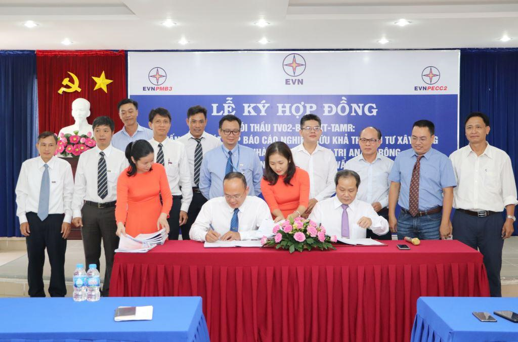 Lễ ký hợp đồng tư vấn khảo sát, lập báo cáo nghiên cứu khả thi đầu tư xây dựng dự án Nhà máy thủy điện Trị An mở rộng. Nguồn: PECC2