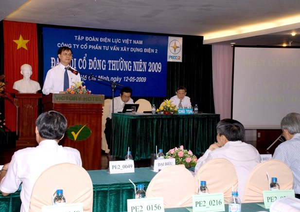 Sáng ngày 12/5/2009, PECC2 tổ chức Đại hội cổ đông thường niên năm 2009. Về dự Đại hội cổ đông thường niên năm nay có 88 cổ đông trực tiếp tham gia với số cổ phần sở hữu/ủy quyền là 3.552.789 cổ phần. Tỷ lệ cổ phần của các cổ đông trực tiếp và ủy quyền dự họp chiếm tỷ lệ tương đương 88,04 % vốn điều lệ của Công ty.